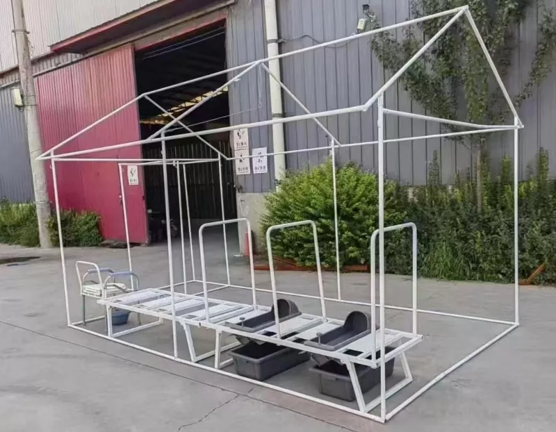 Anns an Teanta Toilet Faochadh Tubaist Èiginn tha structar balla dìreach le leathad dùbailte. Bidh am frèam stàilinn a’ faighinn làimhseachadh an-aghaidh meirge, bidh an canopy a’ cleachdadh stuthan dìon-uisge agus lasair-lasair, agus tha am bathar slàintealachd air a dhèanamh de stuthan àrd-neart le tomhasan mionaideach air an dèanamh cinnteach le bhith a’ cruthachadh molltair. Tha an siostam solais mothachaidh air a dhol seachad air deuchainnean dìon-uisge agus clisgeadh, a tha freagarrach airson a chleachdadh a-muigh. Le bhith a’ gabhail ri bun-bheachd dealbhaidh modular, tha an teanta a’ comasachadh co-chruinneachadh luath agus disassembly - bidh ceanglaichean frèam stàilinn a’ cleachdadh joints snap-on, a’ ceadachadh suidheachadh gun innealan. Bidh an siostam fionnarachaidh a’ gabhail ri dealbhadh convection le scrionaichean dìon-bhiastagan gus cuairteachadh èadhair a-staigh a chumail suas.